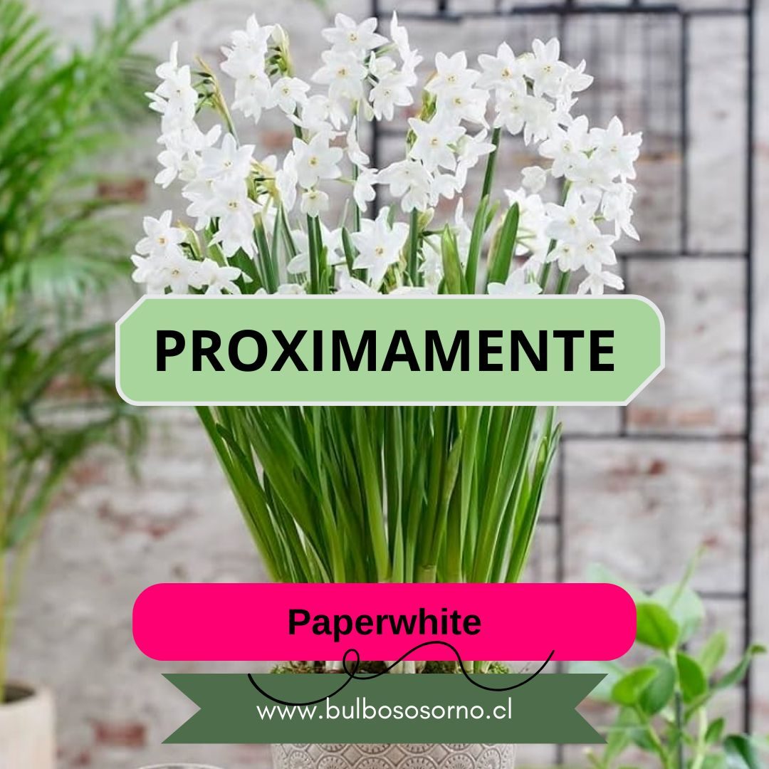 Los narcisos, son bulbosas perennes conocidas por sus brillantes y atractivas flores. La variedad Paperwhite se caracteriza por sus racimos de flores y dulce fragancia, son los favoritos en jardines y arreglos florales.